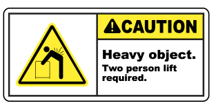 This safety sign is designed to warn about the potential weight and need for two people to lift heavy objects. It comes in both ABS and Chromadek options for your convenience. Always follow proper lifting procedures to ensure the safety of yourself and those around you.