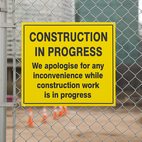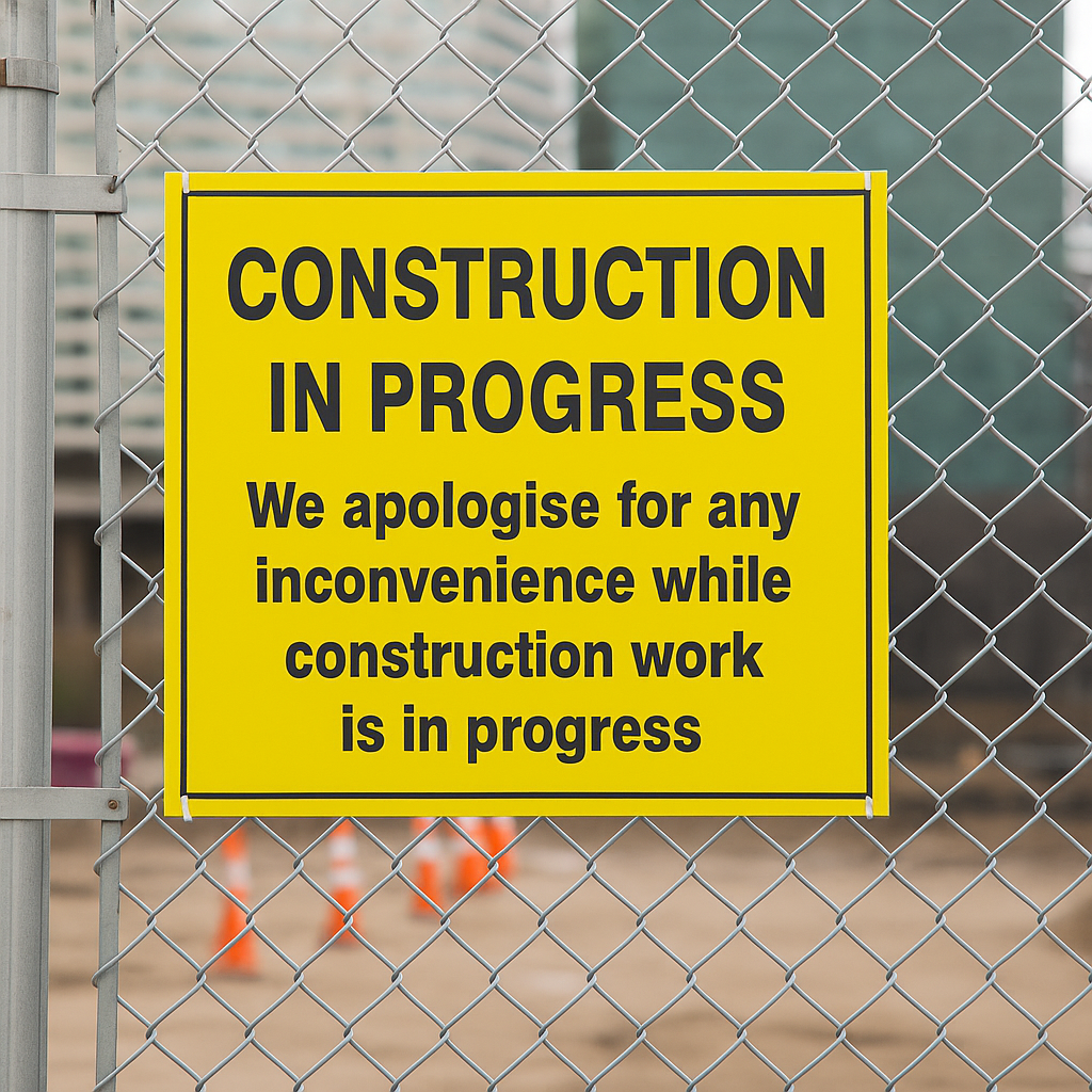 The safety sign is to instruct the public of construction work that is in progress and to apologise for any inconvenience caused.