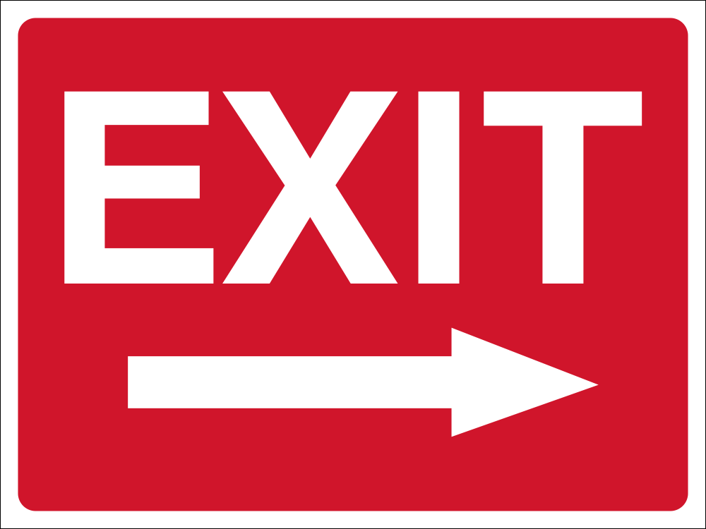 Exit with arrow right safety sign Choose between ABS or Chromadek for a sign that suits your specific needs. Keep your workplace safe and secure with Exit with arrow right safety sign (EX02).