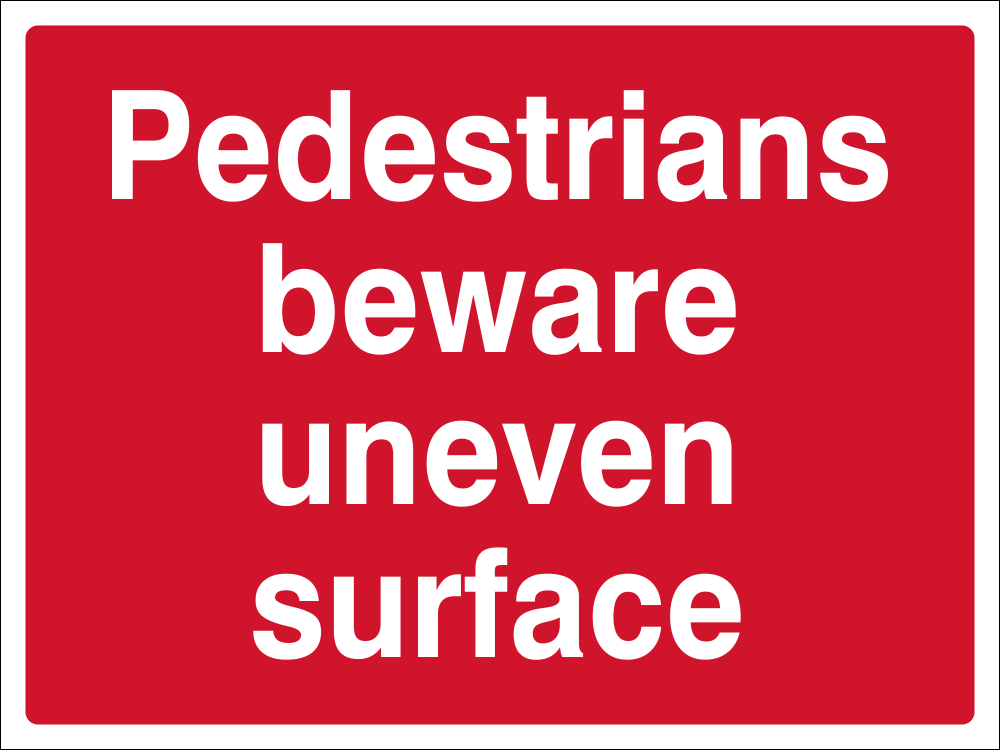 This safety sign is for Pedestrians to beware of uneven surface Revolutionize your safety precautions with this bold and impactful sign. Keep pedestrians safe by warning them of any uneven surfaces ahead..