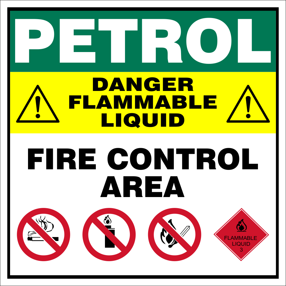 Experience the powerful warning of Petrol: the Danger Flammable Liquid safety sign (FA17). Keep your fire control area safe and secure with prohibitory signs that remind everyone of the dangers - No Smoking, No Lighters, No Open Flames. Protect against the hazards of Flammable Liquid with this essential safety sign.